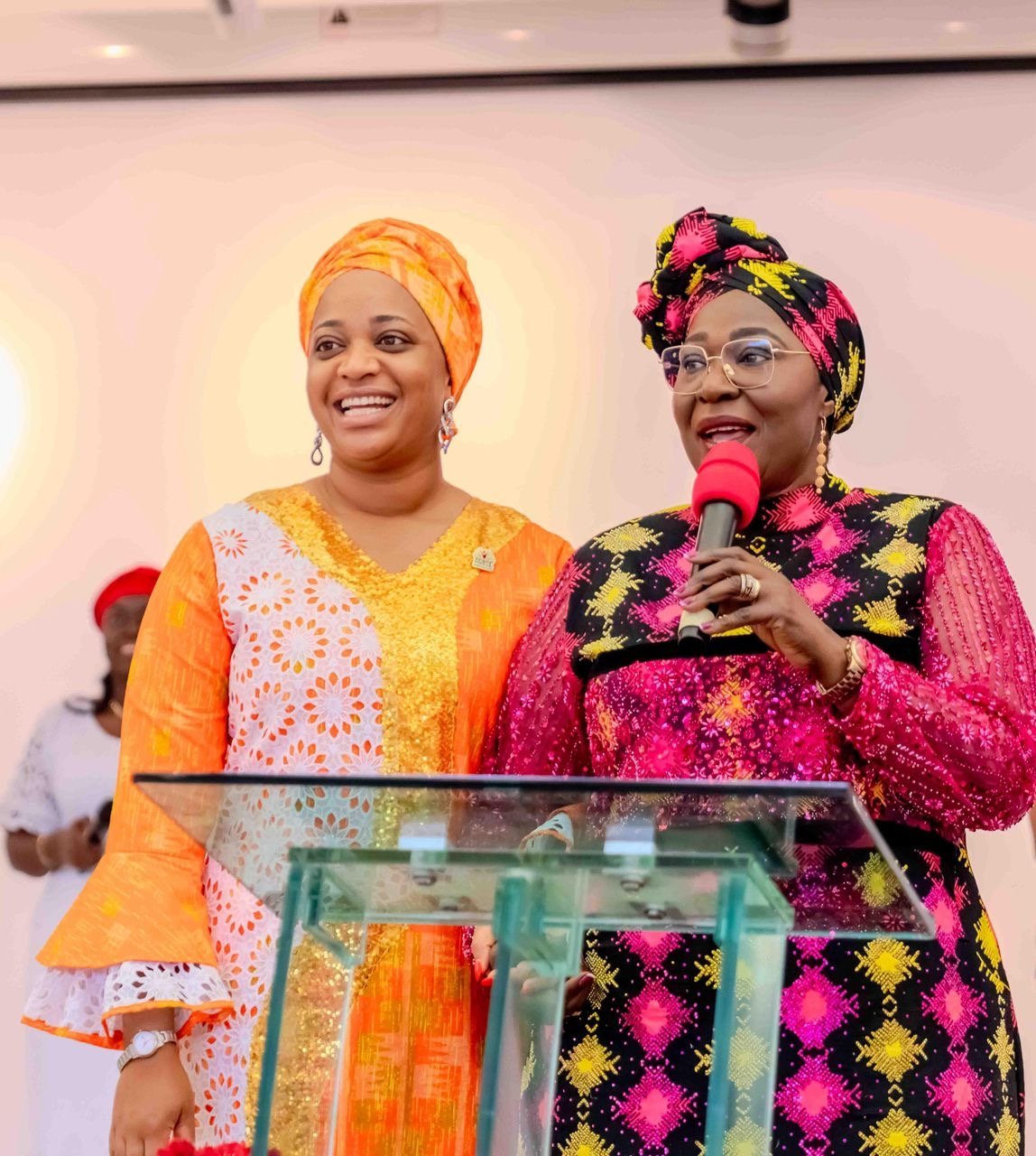 Deputy Governor of Akwa Ibom State, Senator Akon Eyakenyi (right), with the Coordinator, Office of the First Lady, Lady Helen Eno Obareki, at the ceremony.