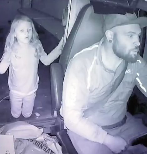 7-year-old Athena Strand was seen standing behind Horner in his FedEx truck.