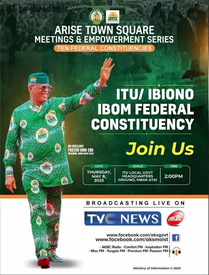 The Governor is scheduled to visit on Thursday, May 8, as part of the ongoing Town Square Meetings and Empowerment Series, which will be hosted at Itu Local Government Area council headquarters.