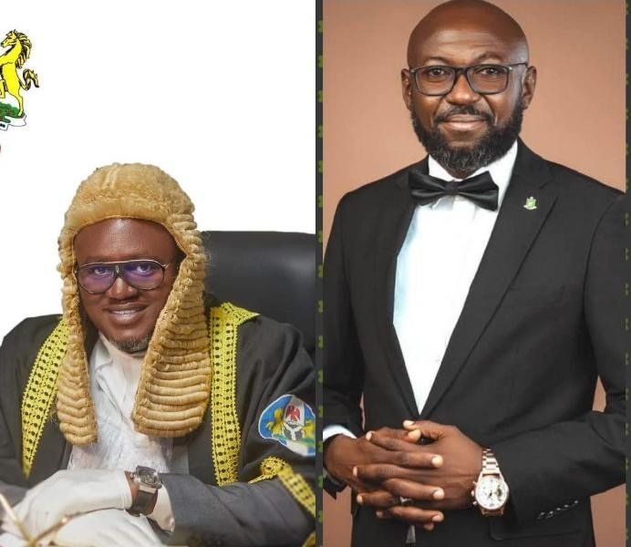 Speaker, Rt Hon Elvert Ayambem (left) and Comrade Ogar Emmanuel Oko.