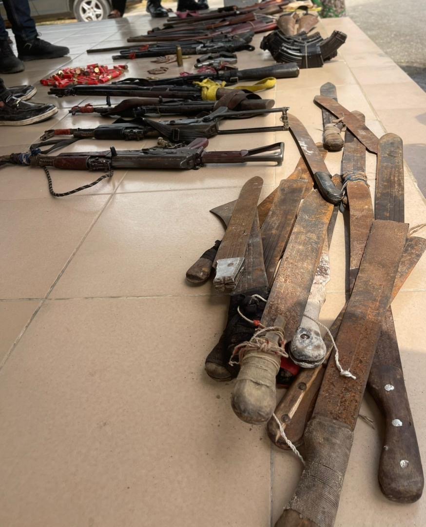 Among the items surrendered were “an expanded GPMG, AK-47 ammunition, a pistol, several locally fabricated rifles with their cartridges, as well as cutlasses”, the Police stated.