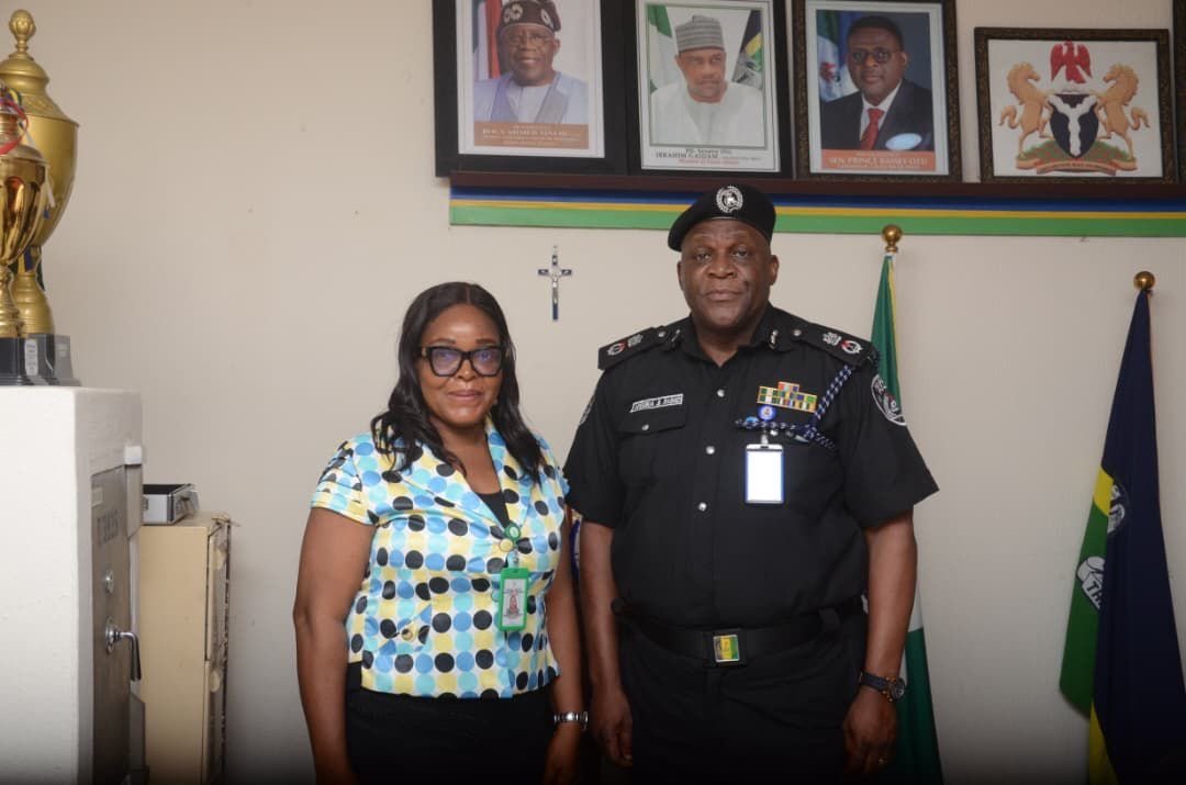 CP Rashid Afegbua, psc, mnips, (right) with the Coordinator of the NIMC, Mrs. Nwoye Bridget Ogechukwu (AD) during the visit on Monday.
