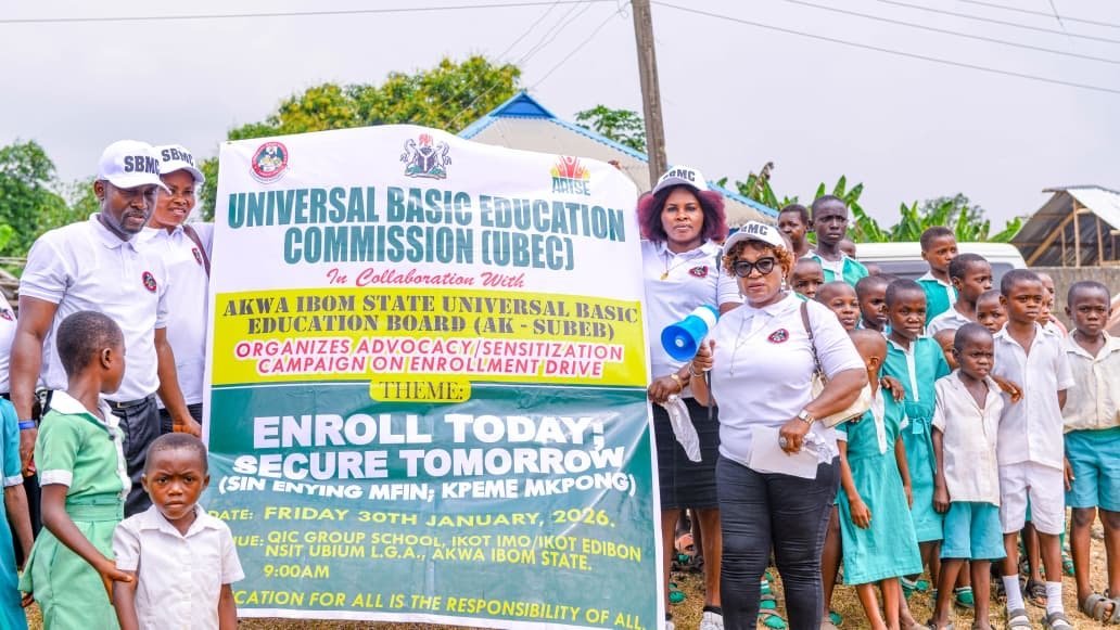 In furtherance of efforts to strengthen basic education and reduce the number of out-of-school children, the Universal Basic Education Commission (UBEC), in collaboration with the Akwa Ibom State Universal Basic Education Board (SUBEB), has taken the ongoing advocacy and sensitization campaign on school enrollment to Nsit Ubium Local Government Area of Akwa Ibom State.