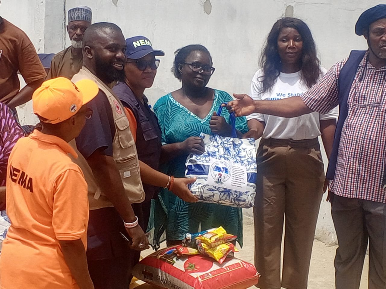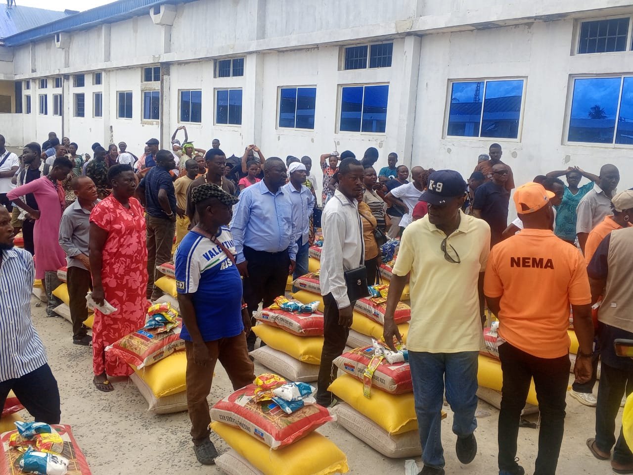 She said Items distributed were 300 bags of 25-kilogramme rice, 300 bags of beans, 300 bags of garri, 300 bags of cement, 50 rolls of roofing sheets, 30 bags of salt, 30 cartons of tomato paste