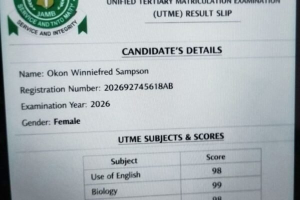 By Frank Ulom The Joint Admissions and Matriculation Board (JAMB) has dismissed and debunked the widely circulated result slip claiming that ‘a candidate from Cross River State scored 394 in the 2026 Unified Tertiary Matriculation Examination (UTME),’ describing it as “fake.” The said result, which trended on various social media platforms, including Facebook and X,…