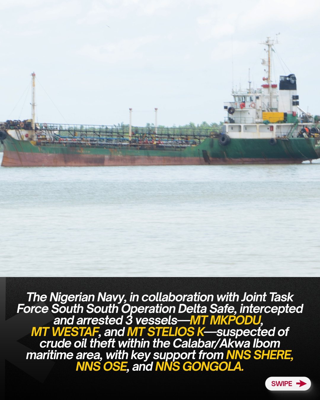 The operation, carried out across key waterways, highlights ongoing efforts by Nigerian security forces to combat large-scale crude oil theft and illegal bunkering, which have long affected the country’s economy and oil production capacity.